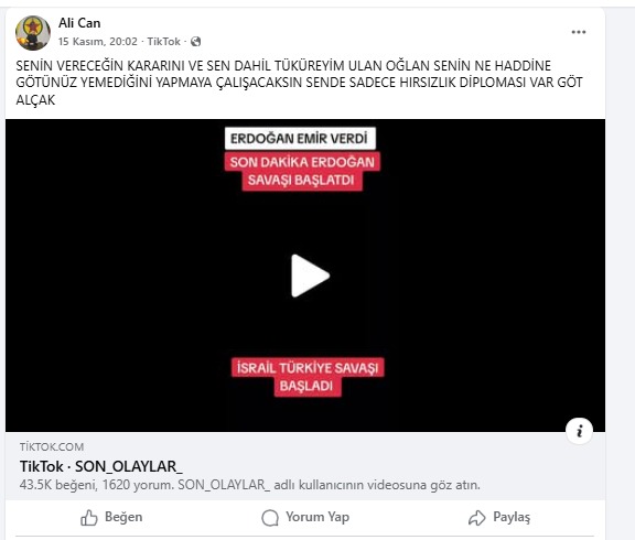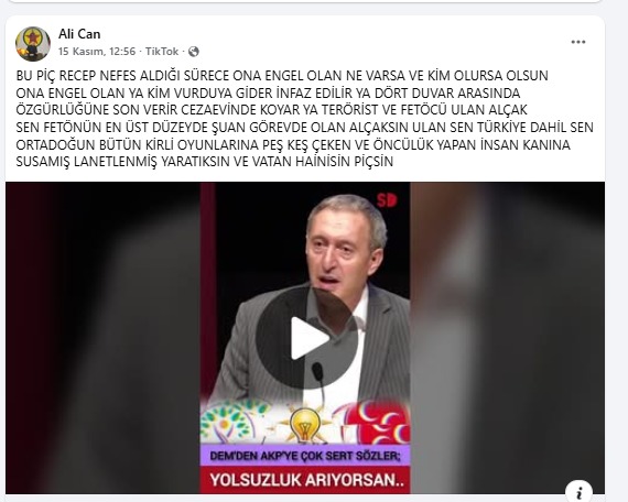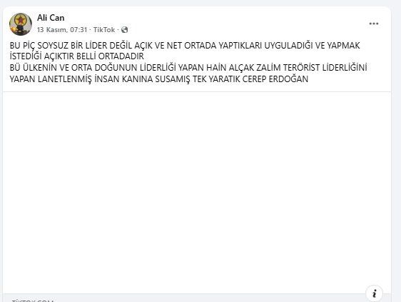 Cumhurbaşkanına yönelik küfür, tahkir veya onur kırıcı ifade